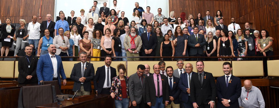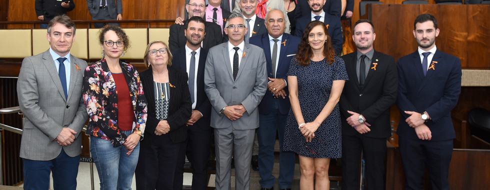 Os servidores Mariana Abascal, do Departamento de Cultura, Eleni da Penha Nizu, da Comissão Especial da Cadeia Produtiva da Música e da Cultura Gaúcha, Leonei Chapuis dos Santos, da Divisão de Proteção à Autoridade, da Polícia Legislativa, Luciane Picada, da Divisão de Tramitação do Departamento de Assessoramento Legislativo, Adriano Leindecker, analista de Tecnologia da Informação e Comunicação do Departamento de Tecnologia da Informação, Cristiano Ferreira Pereira, coordenador da Divisão de Projetos e Manutenção do Departamento de Logística, Ana Júlia e Sanderson Furtado Anhaia, das empresas terceirizadas, foram convidados a compor a mesa dirigente dos trabalhos no Plenário 20 de Setembro. Dezenas de servidores da Casa acompanharam a homenagem das galerias.